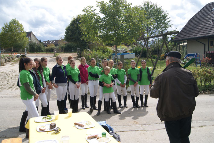 Prüfungskandidatinnen unten beim Stall über den Theoriefragen. Nach und nach tauchten dann immer mehr entspannte Gesichter auf und schliesslich hatte auch die Startnummer 15 den letzten